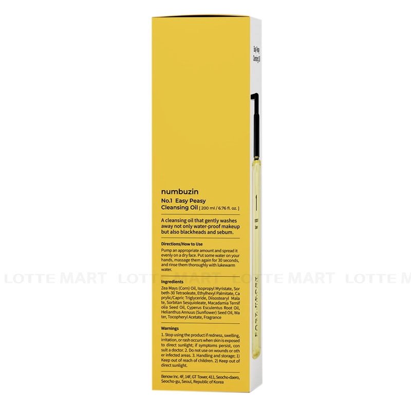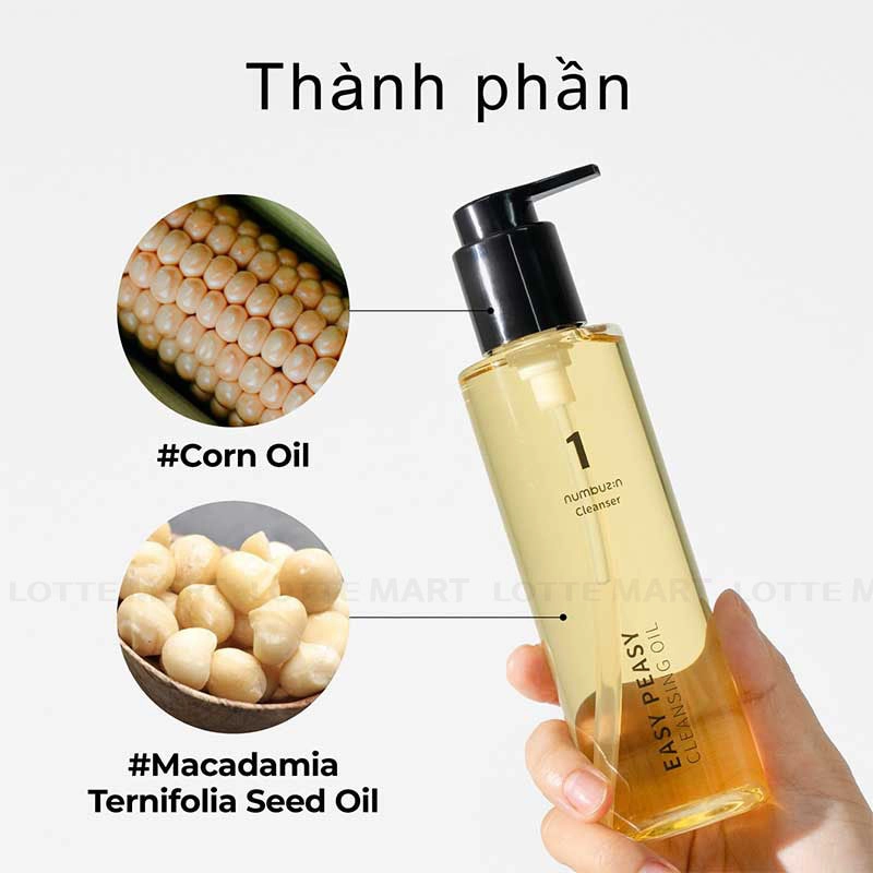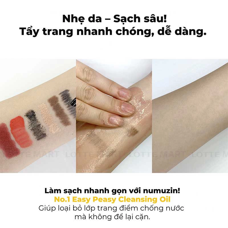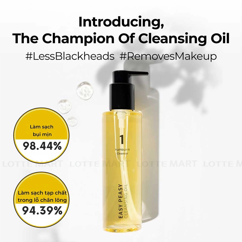 - Dầu Tẩy Trang Numbuzin No.1 Easy Peasy Cleansing Oil giúp làm sạch da, lấy đi bụi bẩn trên da, làm sạch lớp trang điểm chống nước khó trôi và hỗ trợ làm sạch mụn đầu đen và sợi bã nhờn.