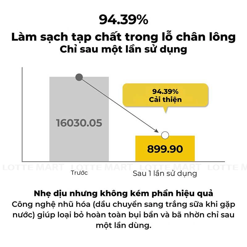 - Sản phẩm loại bỏ mọi loại trang điểm, kể cả lớp trang điểm không thấm nước, mà không để lại cặn nhờn.