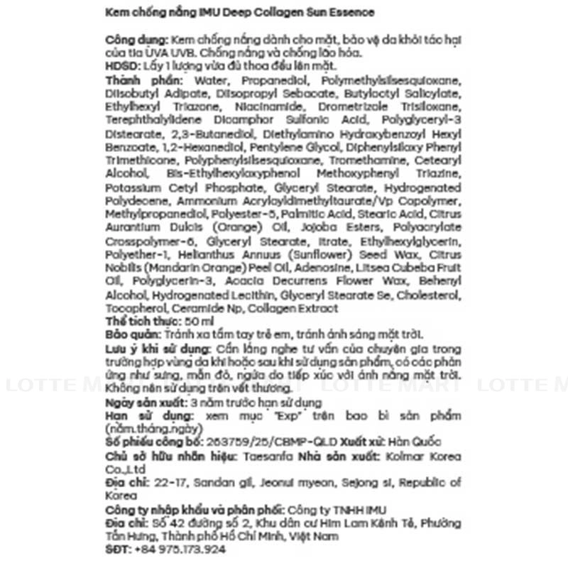 Kem Chống Nắng IMU Deep Collagen 50ml dành cho mặt, bảo vệ da khỏi tác hại của tia UVA UVB. Chống nắng và chống lão hóa.