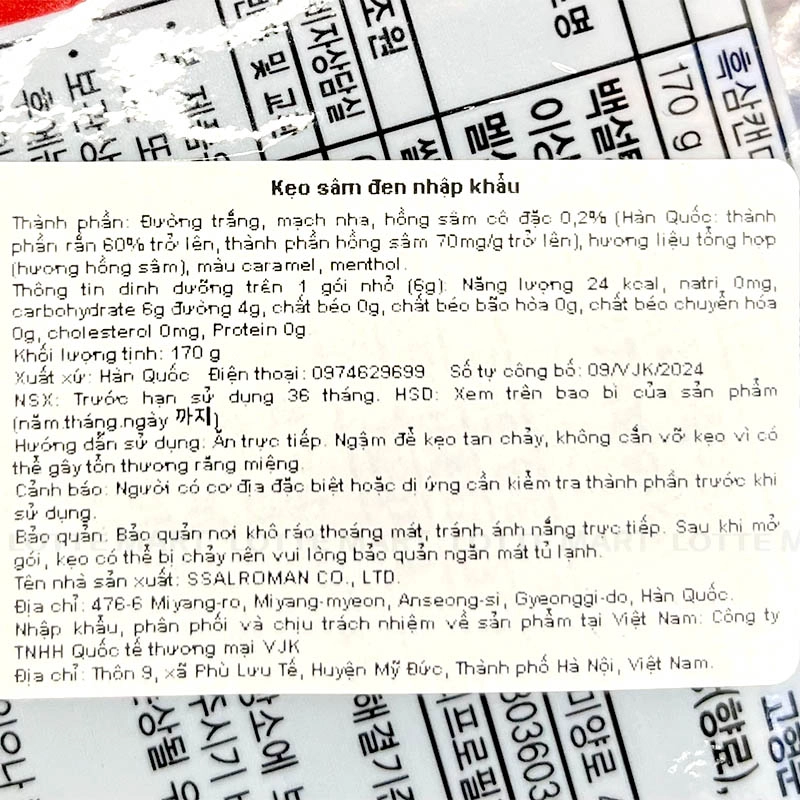 Kẹo Sâm Đen Hàn Quốc Ssalroman Gói 170G