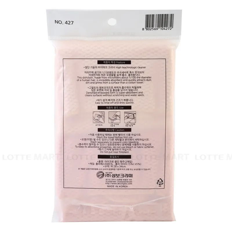 - Khăn Lau Đa Năng Micro 427 là khăn được dệt từ loại sợi hoá học rất nhỏ tên là microfiber. Kích thước của sợi này chỉ bằng 1/100 sợi tóc nên trong quá trình dệt khăn sẽ tạo ra vô số lỗ nhỏ. Những lỗ này có tác dụng thấm hút nước rất tốt và tiện lợi khi vắt nước. Nhờ những lỗ nhỏ mà khăn lau microfiber phù hợp để lau sạch các vết bẩn mà không hề để lại bất kỳ trầy xước nào trên bề mặt của các vật dụng.