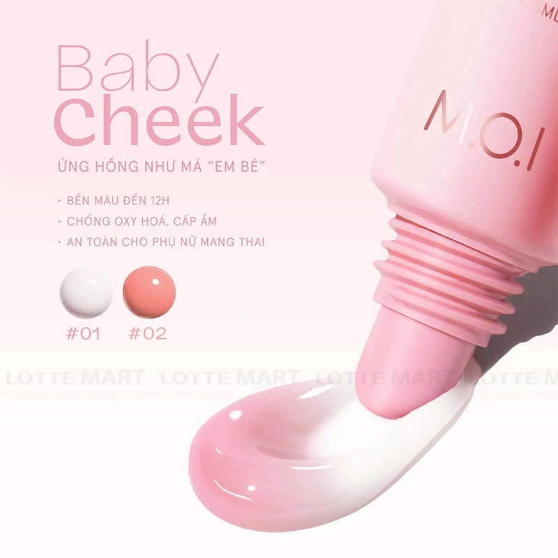- Má Hồng Sữa M.O.I - Baby Cheek 02 Peachy Mơ Đào có khả năng lên màu nhờ nhiệt độ trên làn da và cấp ẩm căng mịn, mang đến vẻ đẹp tự nhiên, ẩm mướt như những cánh hoa.