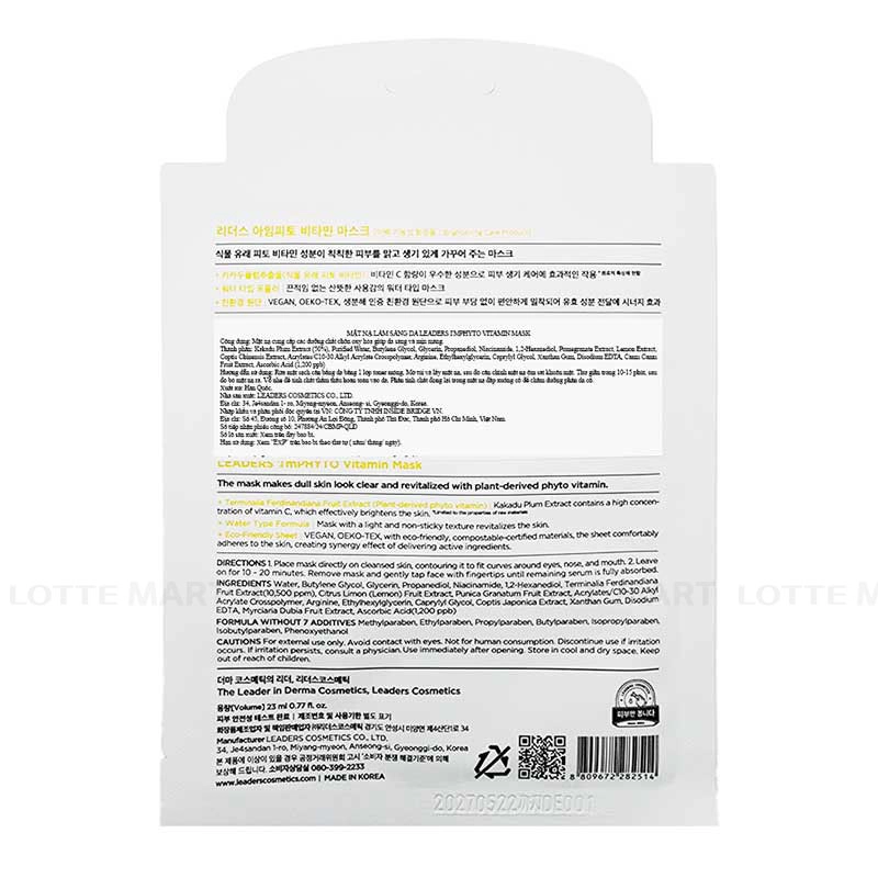 Mặt Nạ Giúp Sáng Da Leaders ImPhyto Vitamin thuần chay – Dưỡng sáng & phục hồi làn da mệt mỏi.