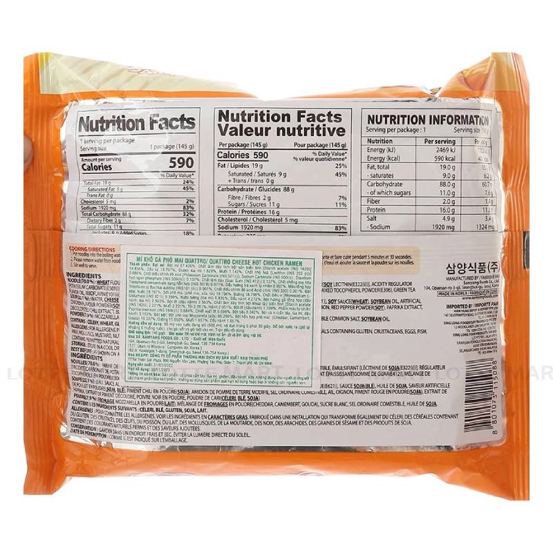 Mì Khô Gà Cay Samyang VỊ Phô Mai Quattro Gói 140G