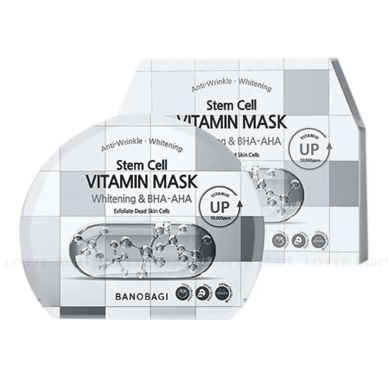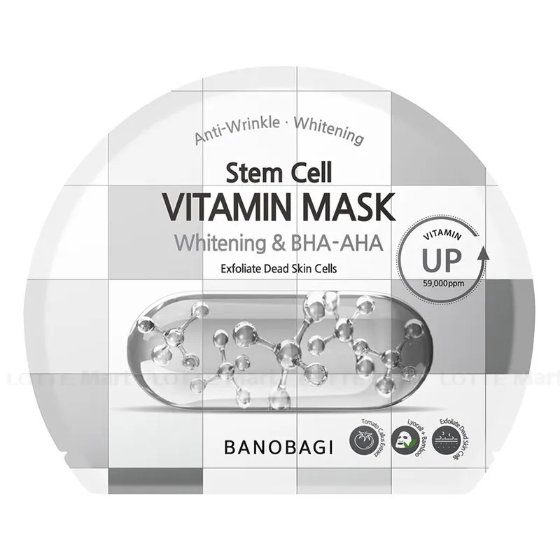 - Mặt Nạ Banobagi Vitamin Mask Dưỡng Ẩm Sáng Da Whitening & BHA-AHA 30g chứa phức hợp nhiều loại vitamin có lợi cho da. Một miếng mặt nạ có lượng dưỡng chất tương đương với một chai serum nhỏ, dưỡng da bóng mượt đầy sức sống, phục hồi độ đàn hồi, làm giảm quá trình lão hóa đồng thời cung cấp độ ẩm cho da luôn mềm mịn, căng bóng.