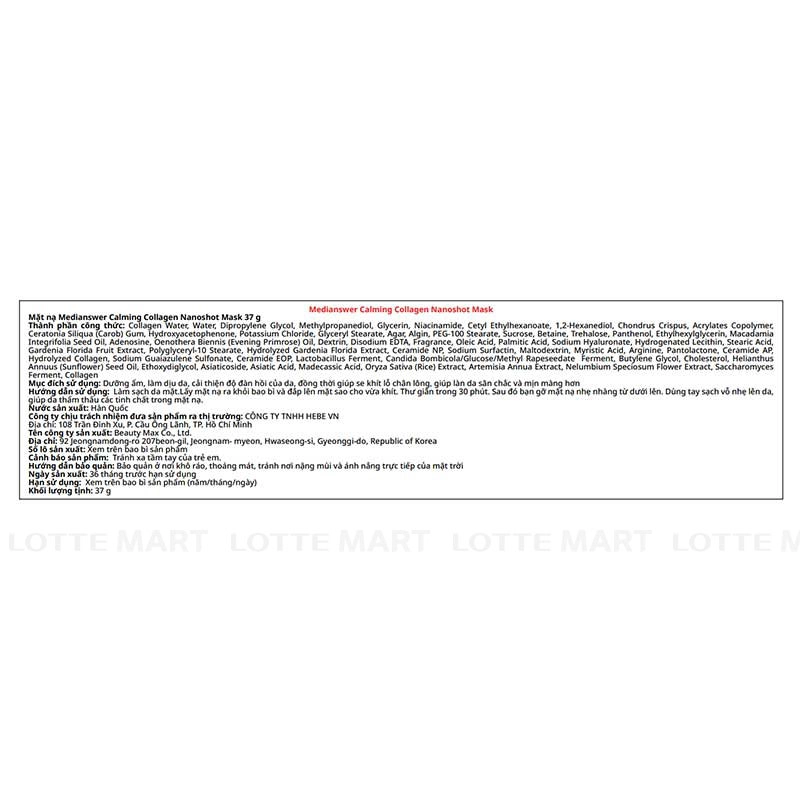 - Mặt Nạ Thạch Medianswer Vita Collagen NanoShot Mask phục hồi độ đàn hồi nhờ 97% Collagen siêu phân tử 100Da – nhỏ hơn lỗ chân lông đến 57.000 lần, dễ dàng thẩm thấu sâu và nuôi dưỡng da từ bên trong.