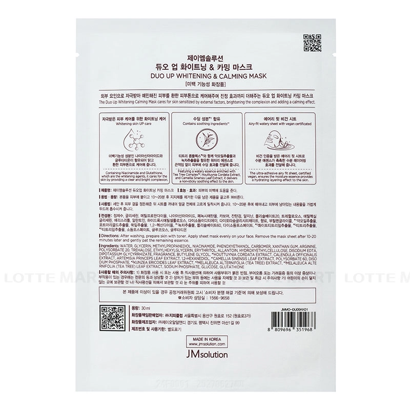 Mặt Nạ Dưỡng Trắng JM Solution Double Whitening And Calming là sản phẩm hỗ trợ dưỡng ẩm và làm dịu da, cung cấp nước, giúp da bớt căng rát, dễ chịu hơn.