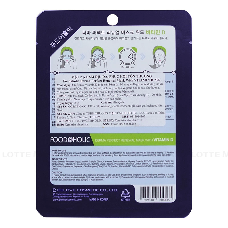 - Mặt Nạ Foodaholic Giảm Lão Hóa Vitamin D góp phần vào sự phát triển, sửa chữa và trao đổi chất của tế bào da.