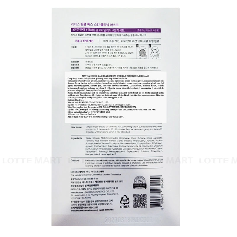 - Mặt Nạ Dưỡng Da Leaders Wrinkle-tox Skin Clinic là dòng mặt nạ giúp ngăn ngừa lão hóa – mờ nếp nhăn, nâng cơ da.