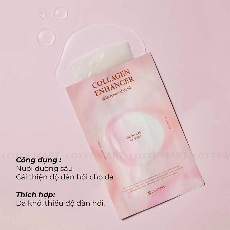 - Mặt Nạ Dưỡng Da Leaders Collagen enhancer Skin Renewal 25ml giúp tăng độ đàn hồi và cấp ẩm sâu cho da.