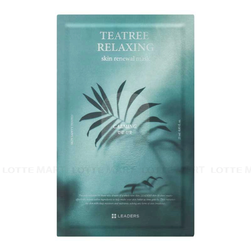 Mặt Nạ Dưỡng Da Leader Tea Tree Relaxing Skin Renewal chứa tràm trà, rau má, diếp cá và hoa cúc, giúp giảm đỏ, làm dịu mụn, kiểm soát dầu và phục hồi da hiệu quả.