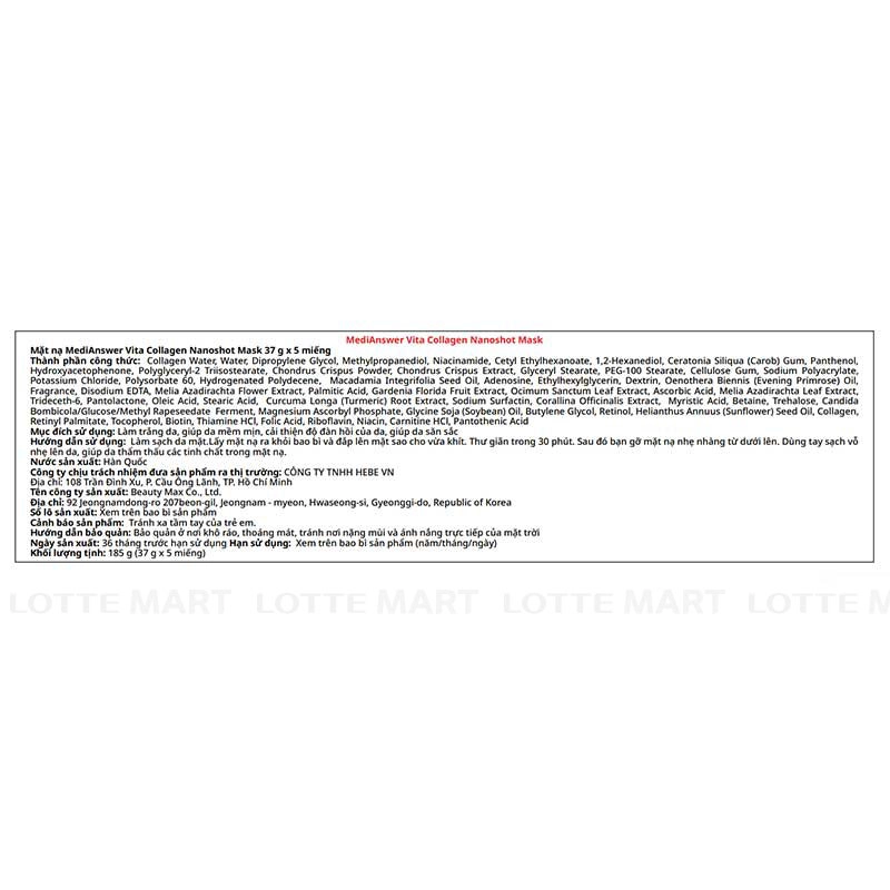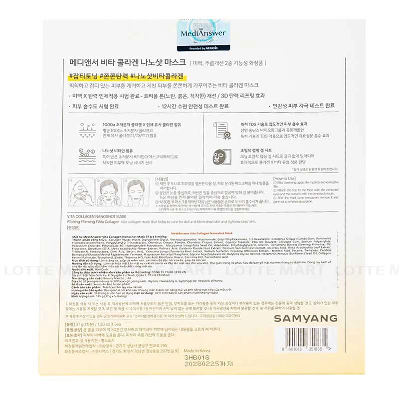 - Mặt Nạ MediAnswer Vita Collagen NanoShot Mask - Vàng mang đến hiệu quả dưỡng sáng và duy trì làn da căng bóng suốt 12 giờ.