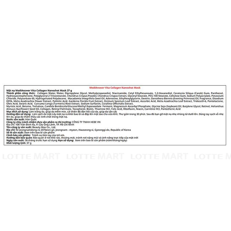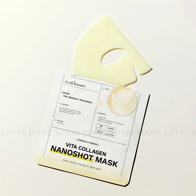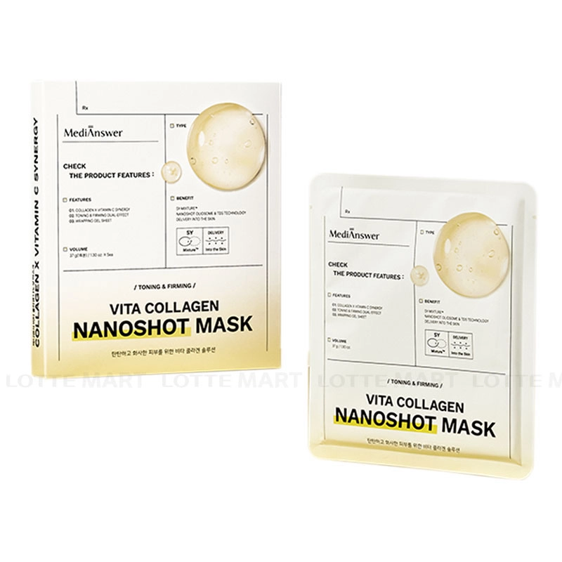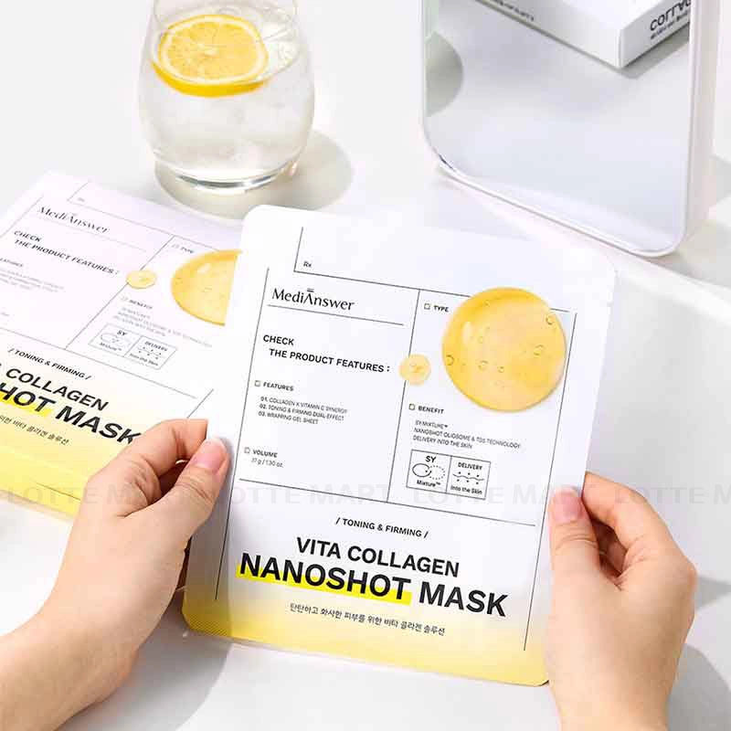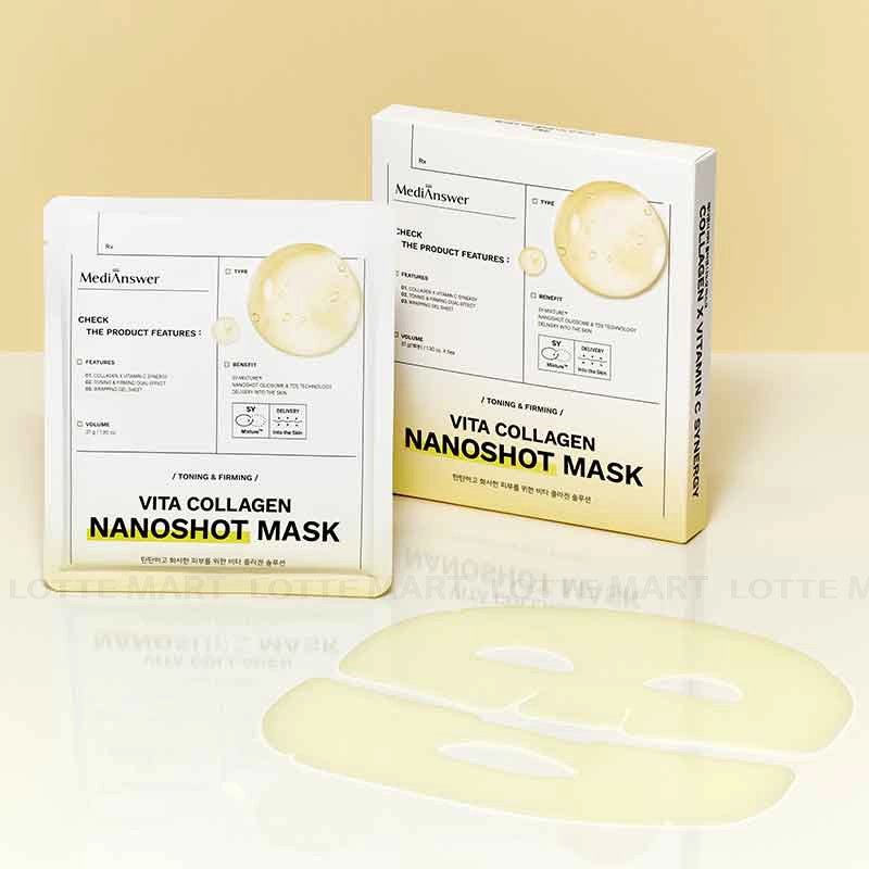 - Mặt Nạ MediAnswer Vita Collagen NanoShot Mask - Vàng mang đến hiệu quả dưỡng sáng và duy trì làn da căng bóng suốt 12 giờ.