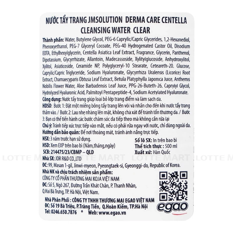 Nước Tẩy Trang JM Solution Centella Cleansing Water Chai 500ml