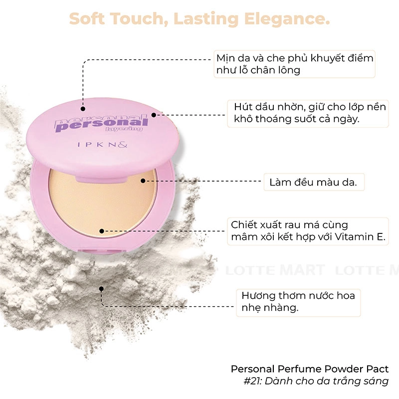 - Phấn Phủ IPKN Personal Perfume Powder Pact #21 với chất phấn siêu mịn, nhẹ tênh trên mặt, không gây bí da hay mụn, kiểm soát dầu hiệu quả.
