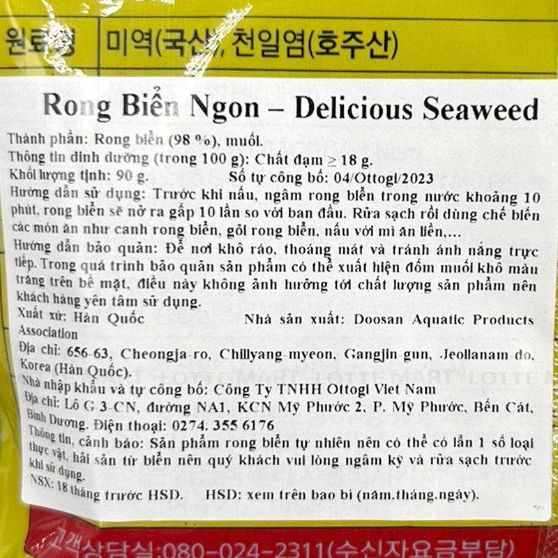 - Rong Biển Ngon Ottogi Gói 90G là sự lựa chọn hoàn hảo cho những ai yêu thích hương vị tự nhiên và dinh dưỡng của rong biển. Với nguồn nguyên liệu từ rong biển thật, sản phẩm này không chỉ mang lại hương vị tươi ngon mà còn đảm bảo an toàn và chất lượng cho bữa ăn của bạn.