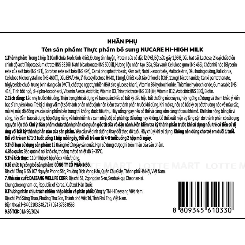 Sữa Dinh Dưỡng Nucare Hi High Lốc 3 Hộp 110ml