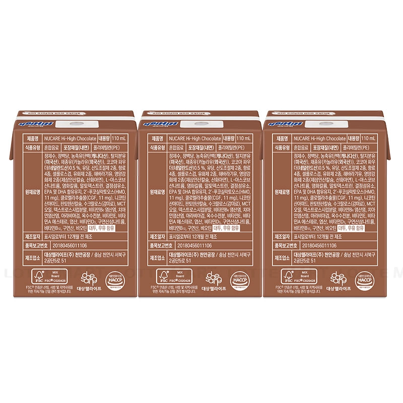 - Nước tinh khiết, Đường tinh luyện, Protein sữa cô đặc (2.0%), Bột sữa gầy (1.95%), Dầu hạt cải, Bột ca cao 0.5%, Lactose, 2 loại chất điều chỉnh độ axit (Tripotassium citrate (INS 332(ii), Natri bicarbonate (INS 500(i)), Hương liệu nhân tạo (Socola, Socola sữa, Sữa, Vani sữa), Cellulose gum (INS 466), Chất nhũ hóa (Glycerin este của axit béo (INS 471), Sorbitan este axit béo (INS 494), Canxi phosphate tribasic, Kẽm oxit, Natri L-ascorbate, Maltodextrin, Dầu hướng dương, Kali clorua, Cellulose Microcrystalline (INS 460(i)), Dầu EPA/DHA, 2’-fucosyllactose (HMO, 11mg), Chiết xuất tảo Chlorella (CGF, 11mg), Nicotinamide, Canxi pantothenate, chất tạo ngọt tổng hợp (Sucralose), triglyceride chuỗi trung bình dạng dầu (MCT), chất tạo ngọt tự nhiên (Bột siro glucose khan), Vitamin B6 hydrochloride, Thiamine hydrochloride, Gum arabic (INS 414), Tinh bột ngô, dl-alpha-tocopherol, Vitamin A este, Axit folic, Vitamin D3, Trinatri citrate (INS 331(iii)), Vitamin B12, Axit citric (INS 330), Biotin.