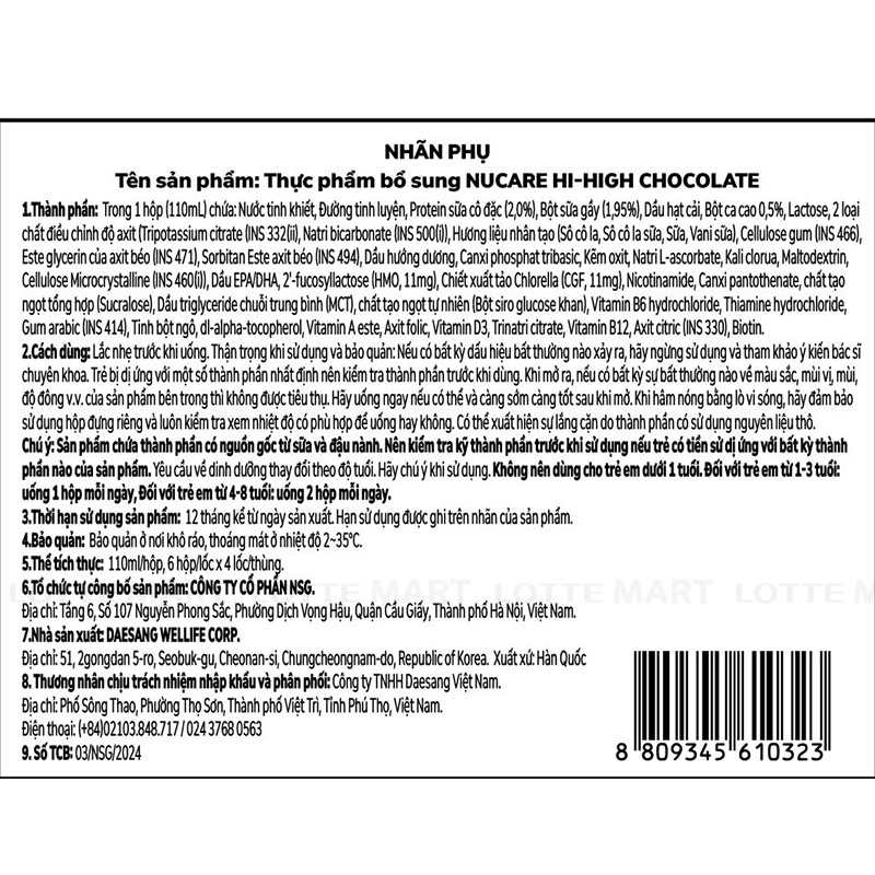 Sữa Dinh Dưỡng Nucare Hi High Vị Socola Lốc 3 Hộp 110ml