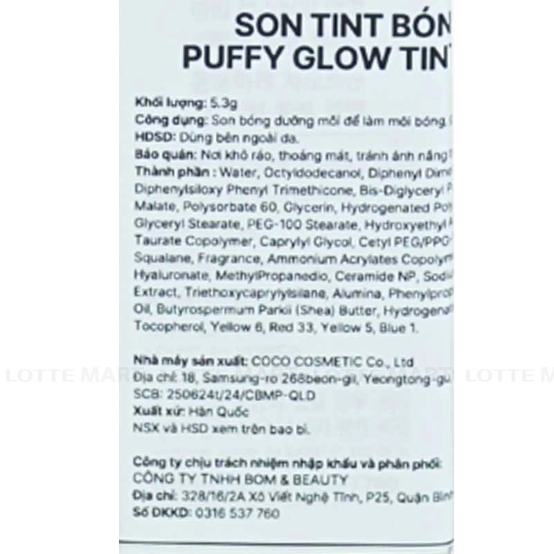 - Son Tint Bóng IPKN Puffy Glow Tint #06 Coco Brick kết cấu dạng jelly, chứa đến 53% serum dưỡng ẩm, kết hợp Ceramide NP, mật ong và chiết xuất thực vật thiên nhiên giúp môi luôn mềm mịn, căng bóng tự nhiên.