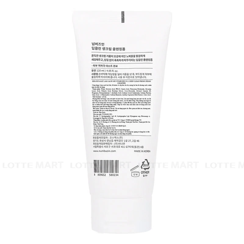 Kem Rửa Mặt Numbuzin Làm Sạch Sâu No.2 Deep Clean Fresh Cream Cleanser