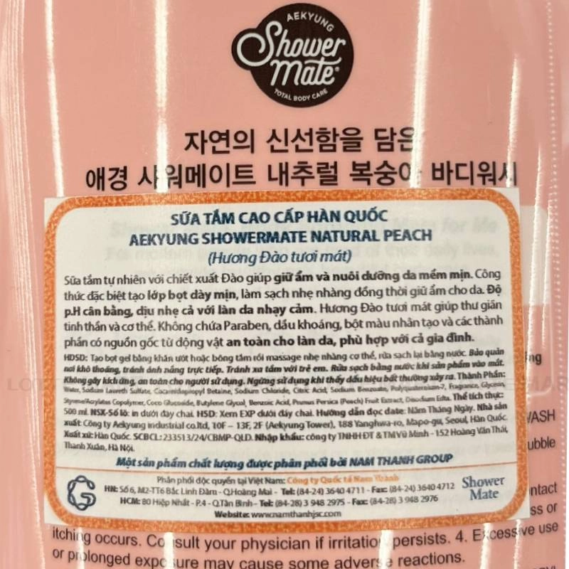 - Sữa Tắm Shower Mate Natural Hương Đào là sản phẩm chăm sóc cơ thể mang lại trải nghiệm tắm gội thư giãn. Sản phẩm giúp làm sạch da và mang lại cảm giác mịn màng.
