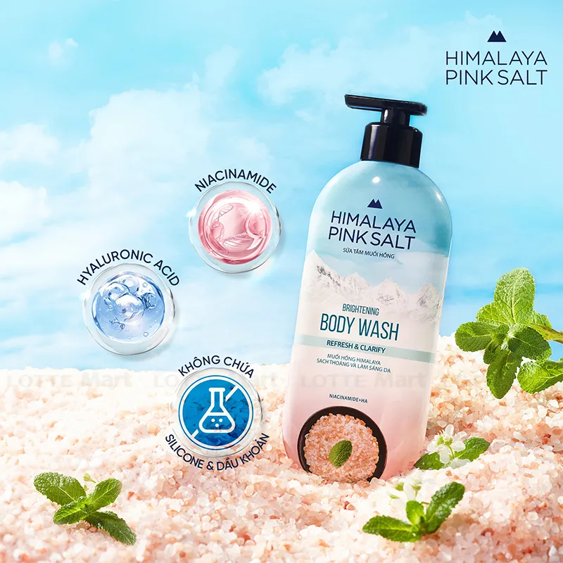 • Sữa Tắm Muối Hồng Himalaya Pink Salt Tươi Mát 500g cho cả gia đình giúp da mịn màng và ẩm mượt mà không gây kích ứng với lượng bọt dồi dào chứa muối hồng Himalaya và các thành phần chăm sóc da đã được cấp bằng sáng chế.