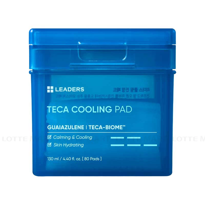 - Toner Pad Cấp Ẩm Làm Dịu Làn Da Leaders Teca Cooling Pad Hộp 80 Miếng chứa guaiazulene, TECA Biome™ và probiotics, giúp làm dịu da khô rát, hạ nhiệt nhanh chóng và phục hồi da nhạy cảm