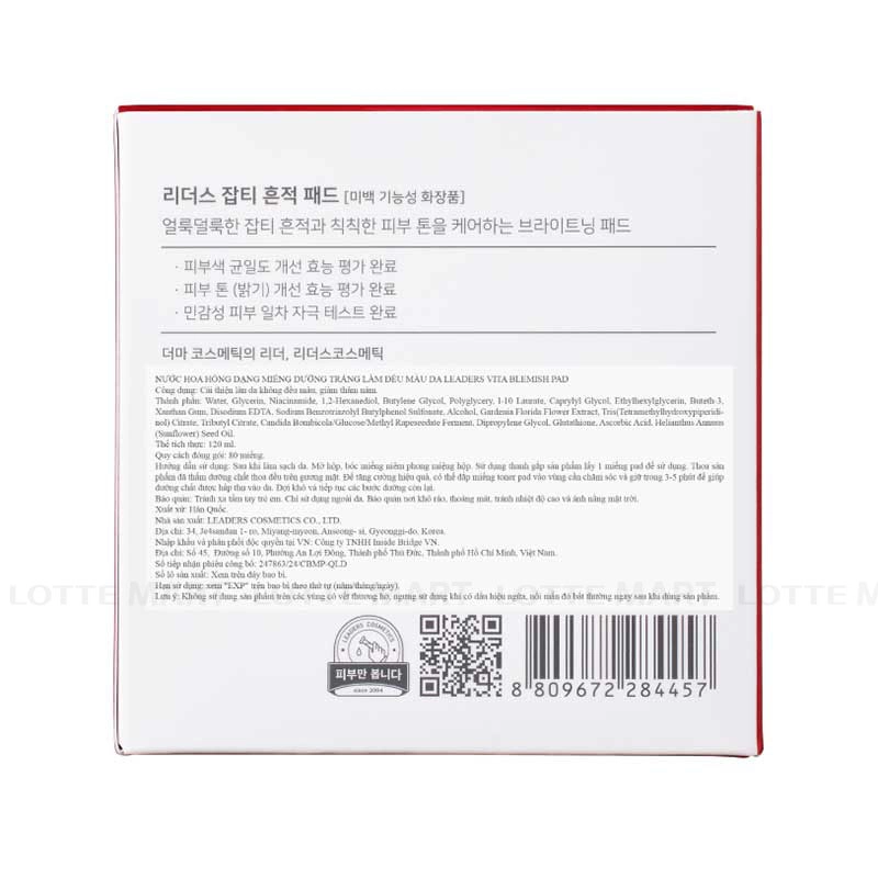 - Toner Pad Dưỡng Trắng Làm Đều Màu Da Leaders Vita Blemish Pad Hộp 80 Miếng – Làm sáng & đều màu da.