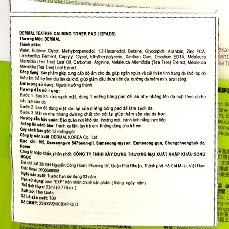 Toner Pad Dermal Tea Tree Giảm Mụn Và Kiểm Soát Dầu Nhờn Gói 12 Miếng
