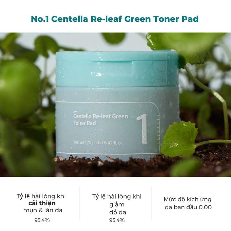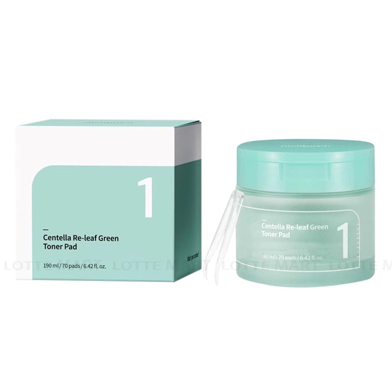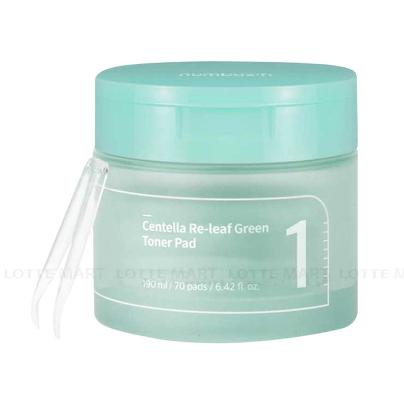 - Toner Pad Numbuzin Làm Dịu Da No.1 Centella Re-Leaf Green Toner Pad 70 Miếng với 89% chiết xuất từ thảo dược, miếng bông toner này làm dịu kích ứng da và giảm mẩn đỏ trên da.