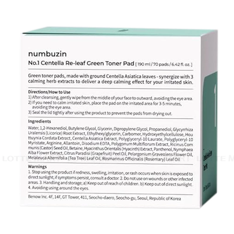Toner Pad Numbuzin Làm Dịu Da No.1 Centella Re-Leaf Green 70 Miếng