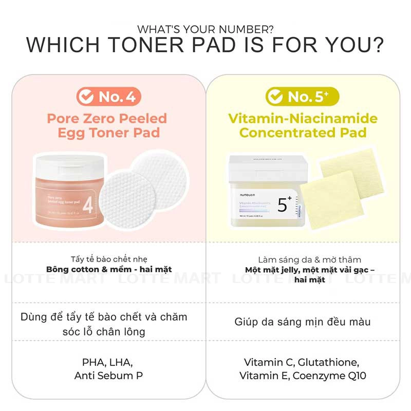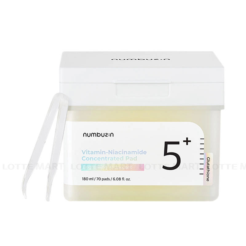 - Toner Pad Numbuzin No.5 Vitamin-Niacinamide Concentrated Pad 70 Miếng giúp giảm tình trạng tăng sắc tố, vết thâm và tông màu da không đồng đều.