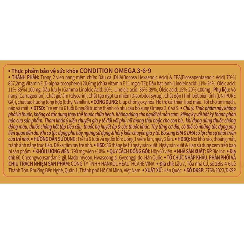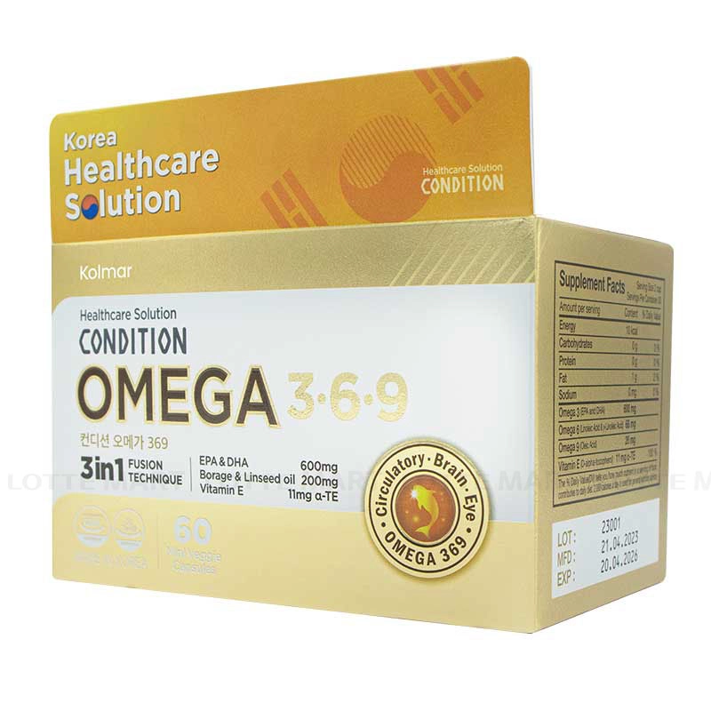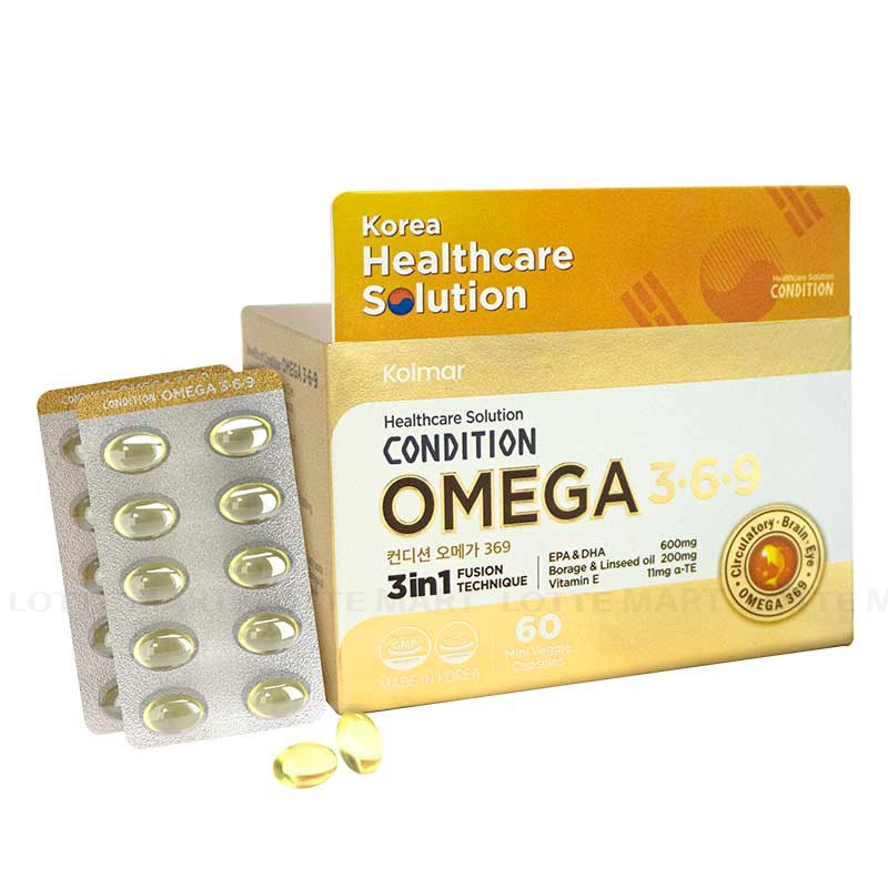 - Viên Uống Bảo Vệ Sức Khỏe Kolmar Condition Omega 369 Hộp 60 Viên có công dụng hỗ trợ chống oxy hóa, cải thiện Lipid máu. Tốt cho tim mạch, não và mắt.
