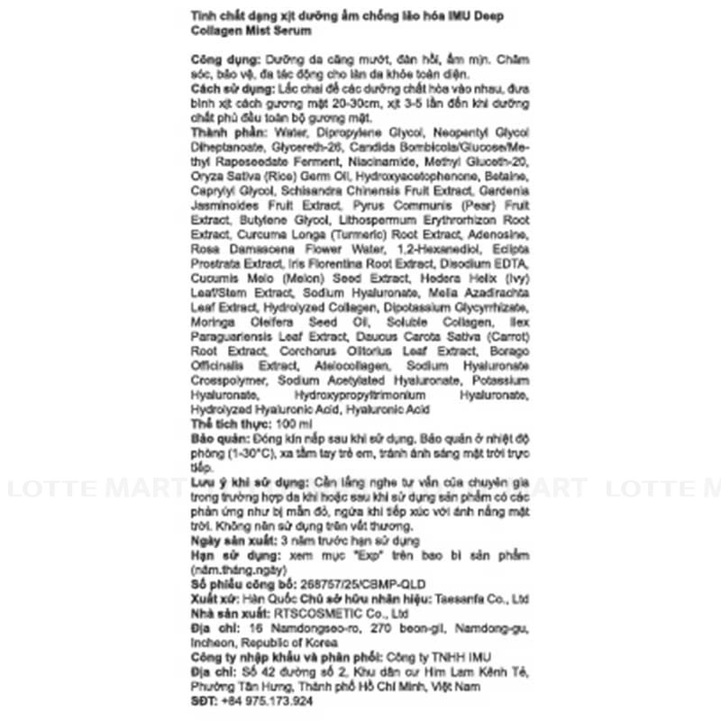 Serum Xịt Khoáng IMU Deep Collagen 100ml dưỡng da căng mướt, đàn hồi, ẩm mịn.