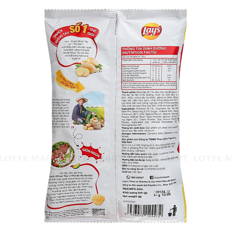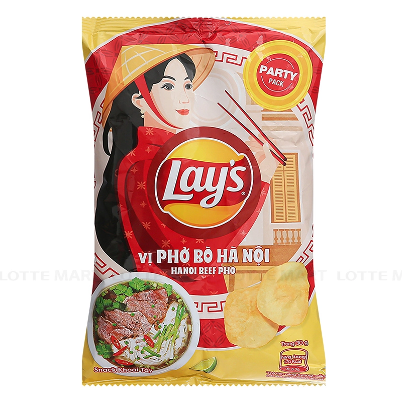 - Snack Khoai Tây Chiên Lay's Vị Phở Hà Nội mang đến hương vị snack độc lạ từ những lát khoai tây tươi mới được chiên vàng ươm kết hợp vị phở bò truyền thống.