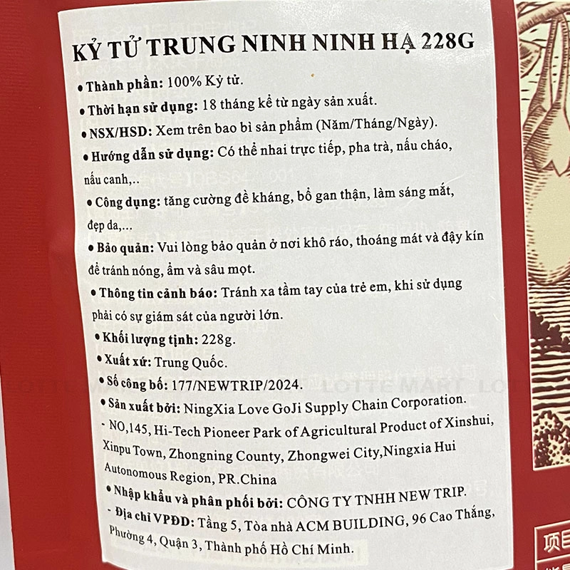 Từng hạt kỷ tử đạt tiêu chuẩn chất lượng nghiêm ngặt, là nguyên liệu lý tưởng để pha những ấm trà xuân thanh ngọt hoặc chế biến các món canh bổ dưỡng.