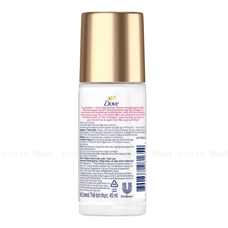 Lăn Ngăn Mùi Dove 3% Niacinamide Dưỡng Trắng, Đều Màu Chai 45ml