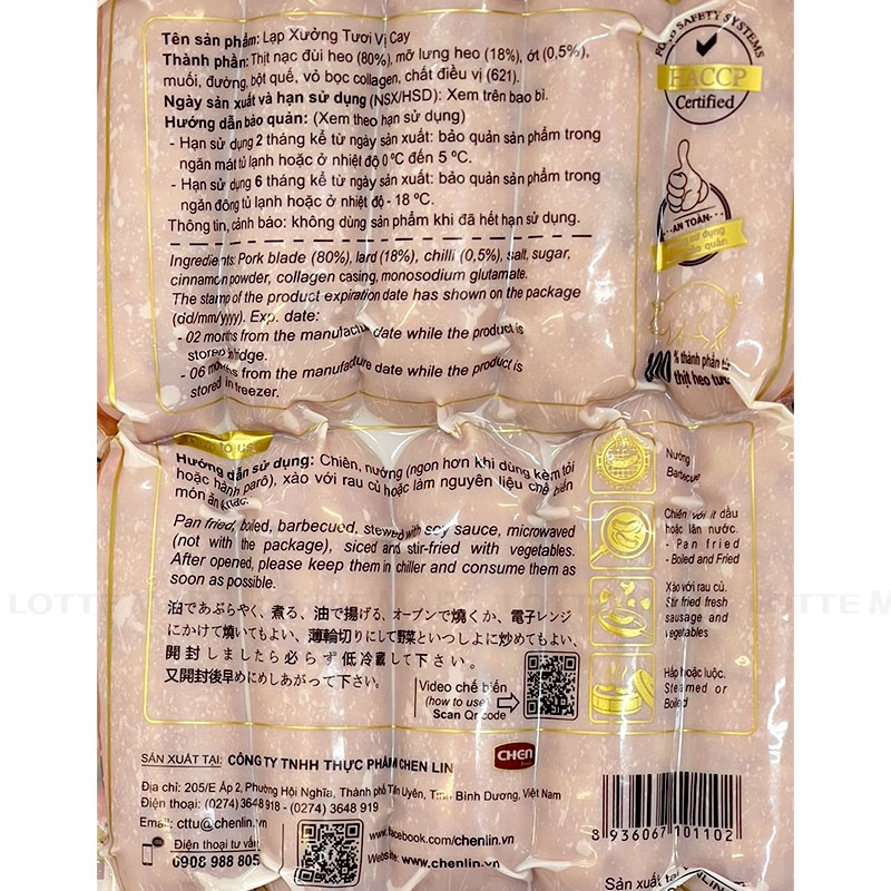 Lạp Xưởng Tươi Chen Vị Cay Gói 500G