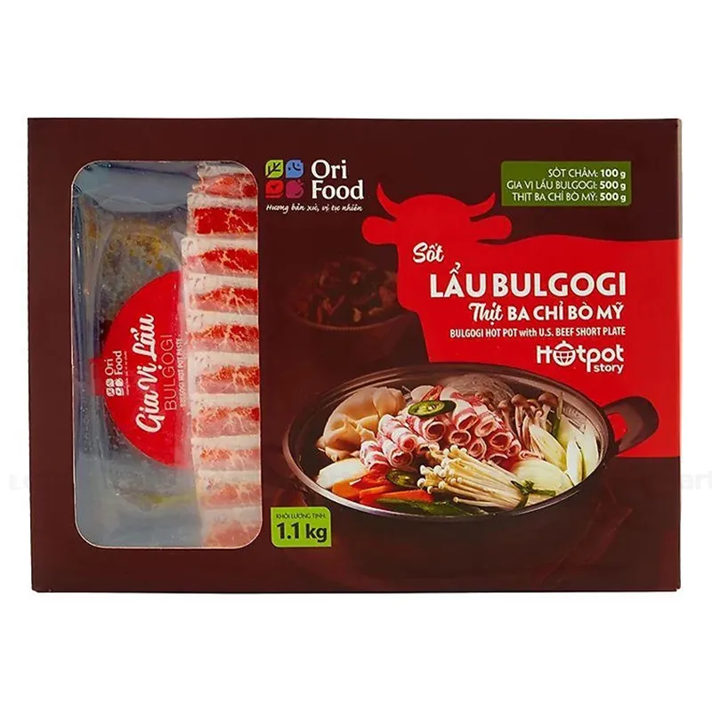 - Sản phẩm lẩu Bulgogi của Ori Food được chế biến từ nước súp ngọt thanh, hòa quyện với nước tương Hàn Quốc nhằm tăng vị ngọt của thịt, giữ trọn vẹn hương vị đặc trưng truyền thống của xứ sở kim chi.