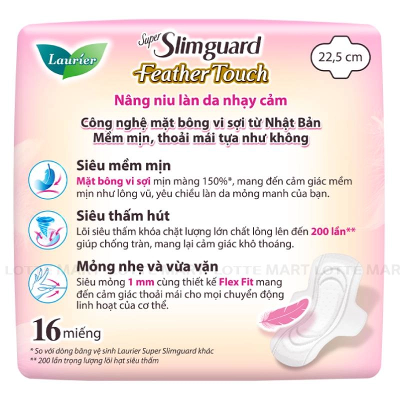 - Dòng Super Slimguard Feather Touch đưa nàng đến cảm giác nhẹ như không, như một "cô bạn đồng hành", nhẹ nhàng nâng niu làn da nàng để ngày "dâu" tới.