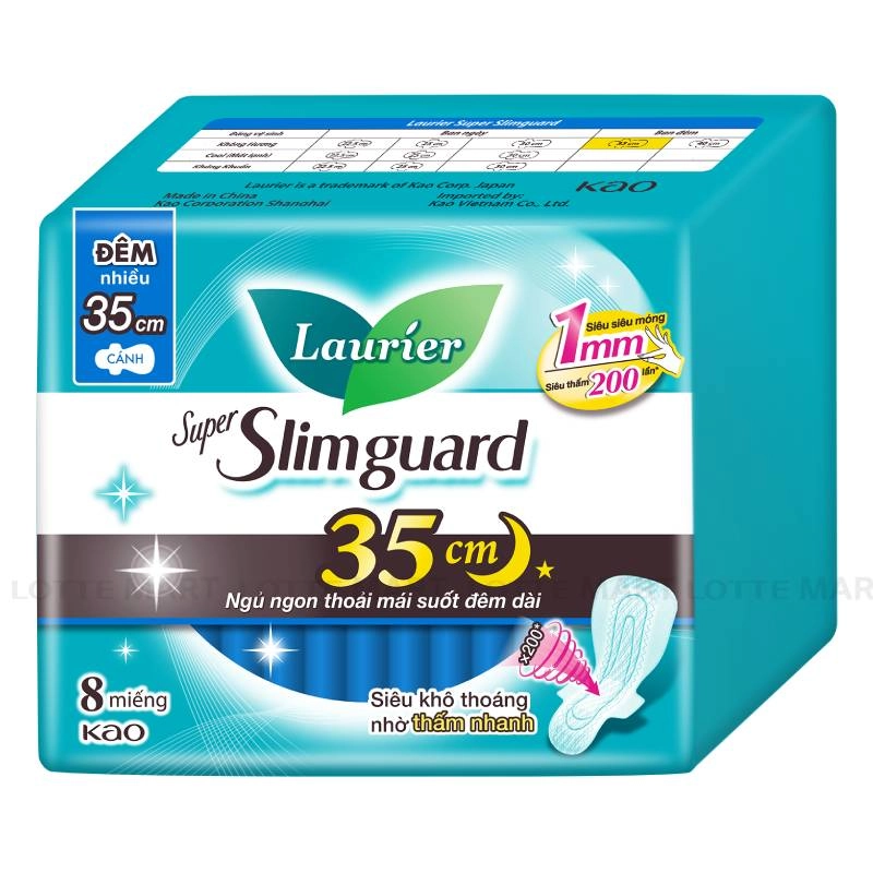 Băng Vệ Sinh Laurier Có Cánh Siêu Mỏng Cho Đêm Nhiều 35cm Bịch 8 Miếng