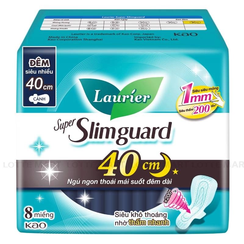 Băng Vệ Sinh Laurier Có Cánh Siêu Mỏng Cho Đêm Nhiều 40cm Bịch 8 Miếng