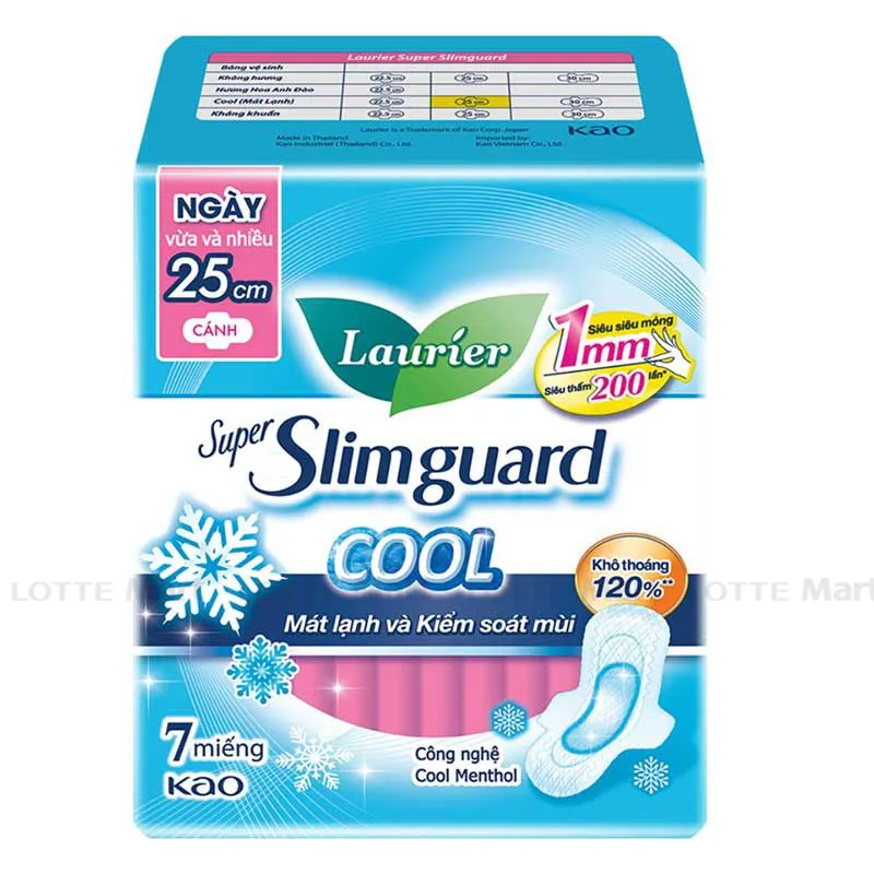 Băng Vệ Sinh Laurier Siêu Mỏng Cánh Mát Lạnh đột phá với công nghệ Cool Menthol từ Nhật Bản cho cảm giác mát lạnh tức thì và không hầm bí suốt ngày dài. Rãnh Hút Thông Minh thoáng khí khóa chặt lượng lớn chất lỏng lên đến 200 lần* và kiểm soát mùi hiệu quả chỉ trong 1mm.
