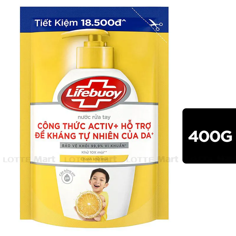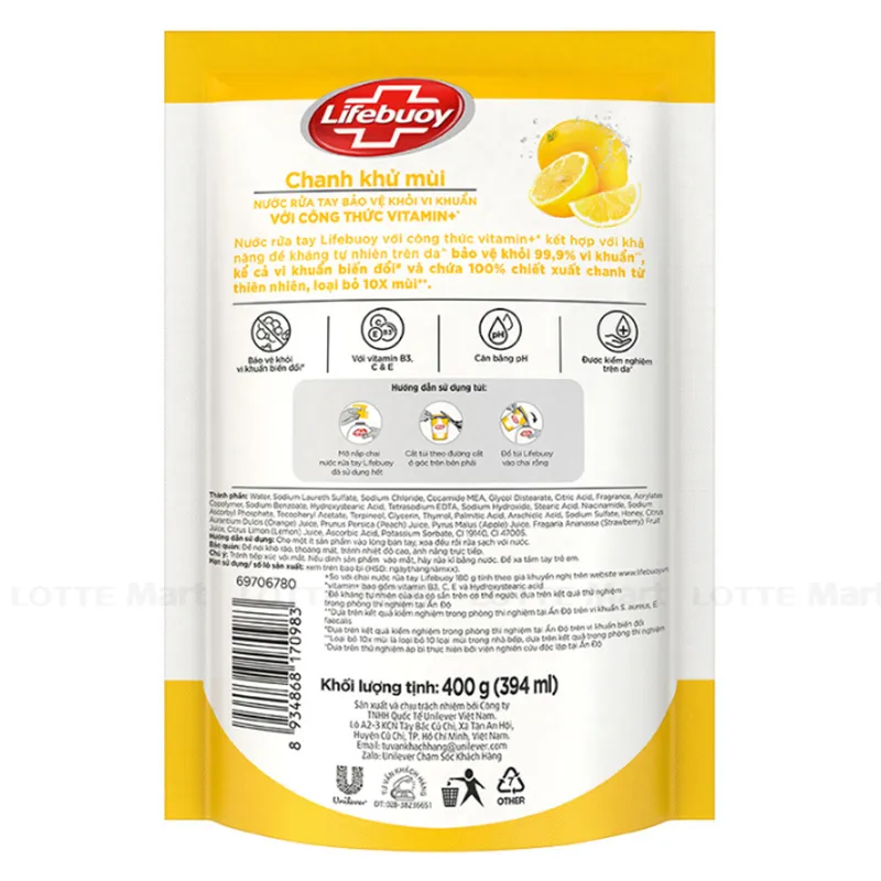 Nước Rửa Tay Lifebuoy Công Thức Vitamin+ Khử Mùi Hương Chanh Túi 400G