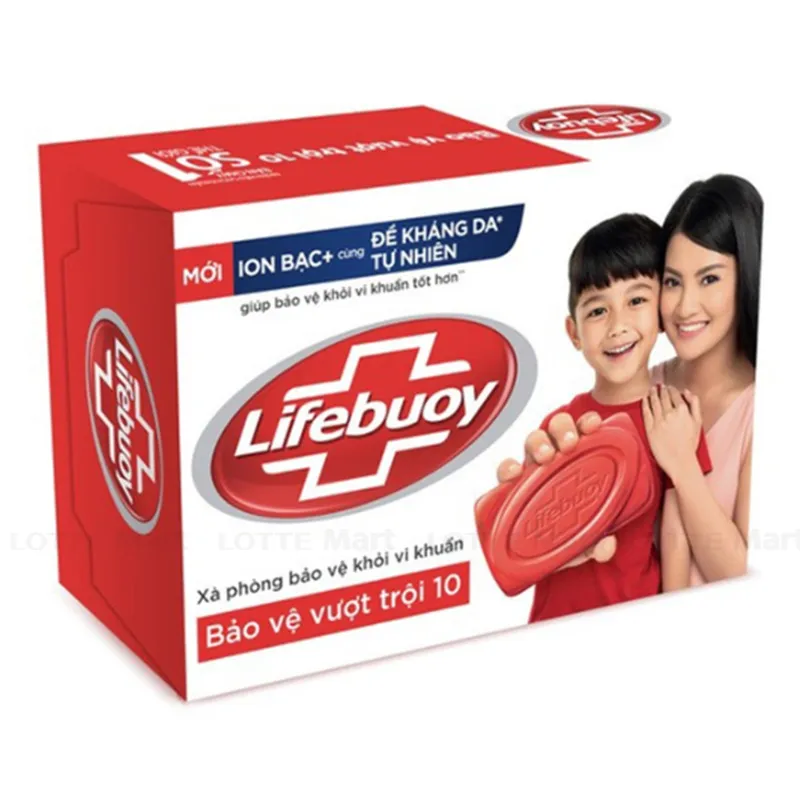 Xà Bông Cục Lifebuoy Diệt Khuẩn Bảo Vệ Vượt Trội 10 90g chứa các thành phần đã được đăng ký bằng sáng chế của Lifebuoy. Đặc biệt, với công thức vượt trội chứa ION BẠC+, xà phòng sạch khuẩn Lifebuoy Bảo vệ vượt trội 10 cùng đề kháng da tự nhiên, giúp bảo vệ khỏi vi khuẩn tốt hơn gấp 10 lần.