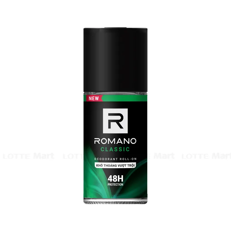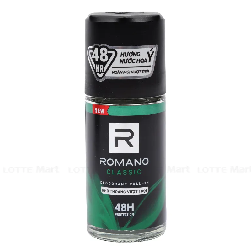 Lăn Khử Mùi Romano Classic Chai 50ml với công thức ngăn mùi, kháng khuẩn có tác dụng khử mùi mồ hôi, mùi cơ thể suốt 24 giờ, mang lại cảm giác thoải mái, tự tin và hương thơm mạnh mẽ, nam tính. Mùi hương nam tính thanh mát giúp cho bạn tự tin suốt ngày dài, thu hút mọi ánh nhìn.