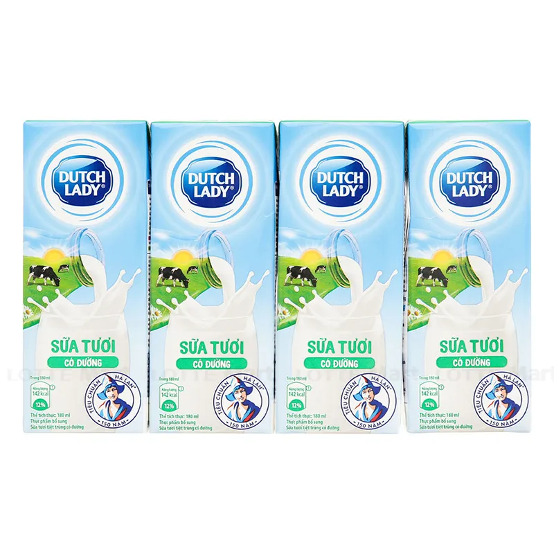 Sữa Tươi Tiệt Trùng Có Đường Cô Gái Hà Lan Lốc 4 Hộp 180ml