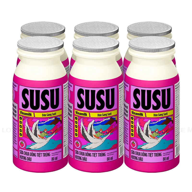Sữa Chua Uống Tiệt Trùng Vinamilk Susu Hương Dâu Lốc 6 Chai 80ml