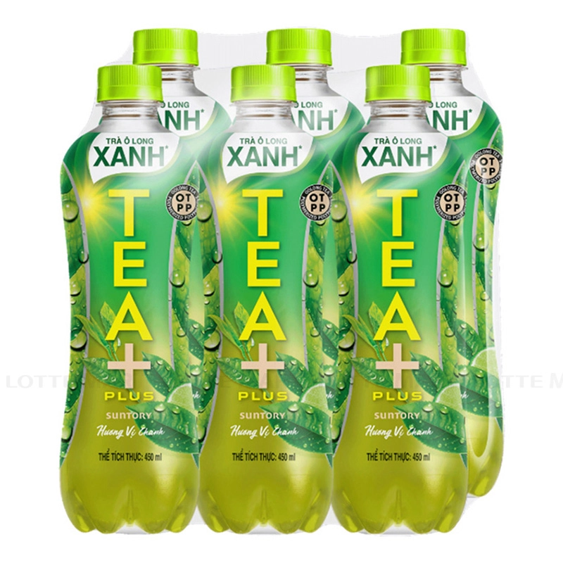 Lốc 6 Chai Trà Ô Long Tea+ Plus Xanh Vị Chanh 450ml